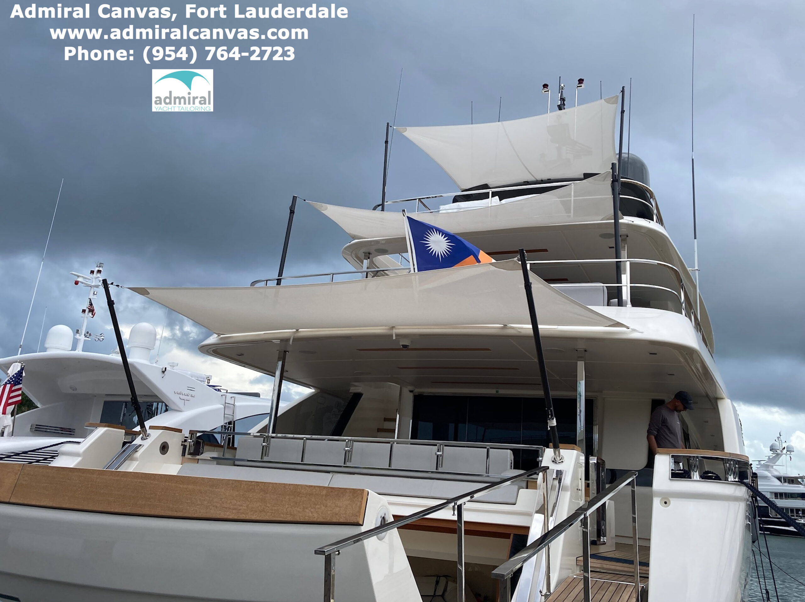 Available in white and black, 2 inch, 3 inch and 4 inch diameter FIXED Carbon Fiber poles for mega yachts and all large boats with large shade areas. They come with internal rigging, high grade marine block and cleat, pulley, but they do not telescope – they are FIXED and just beautiful. They are easy to cut down to the length you want. Support straps are recommended. They fit perfectly in our 2 inch, 3 inch and 4 inch mounting bases (several designs to choose from).